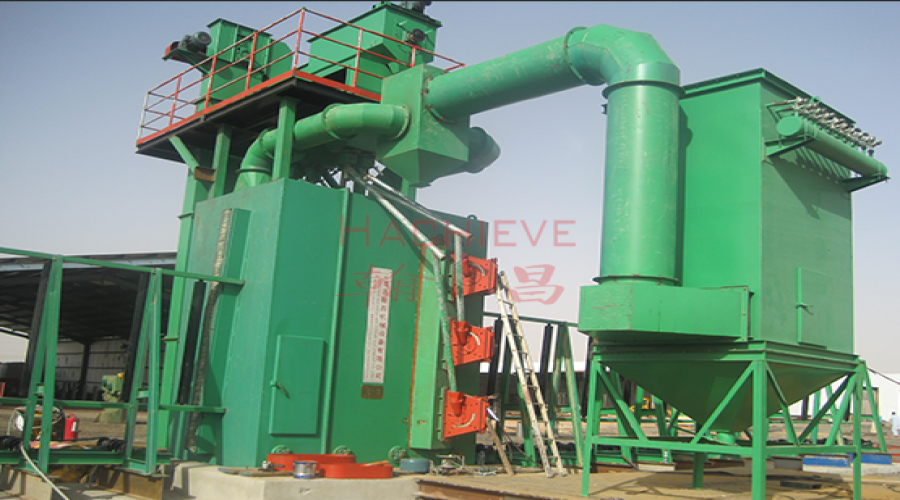 我公司于2012年10月签订了一台QL6930 立式钢板抛丸清理机,并已经顺利安装调试完毕。 该设备主要是为客户清理3米宽12米长的钢板。 该抛丸清理机主要包括送进辊道、立辊系统、抛丸清理室、吹丸室、送出辊道以及抛丸除尘等部件。